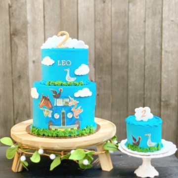 Lumberjack Tree Stump Cake and Stack of Pancakes Smash Cake